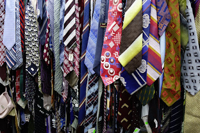In necktie photography, here is tie rack at an antique / curiosity shop here in Moscow
